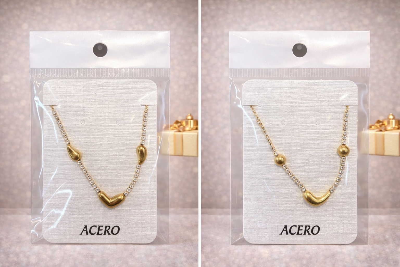 Craquez pour ce collier délicat et élégant en acier inoxydable, parfait pour apporter une touche de brillance à toutes vos tenues. Son design raffiné associe une chaîne fine sertie de strass scintillants à de jolis détails dorés en forme de cœur, pour un rendu à la fois chic et féminin.